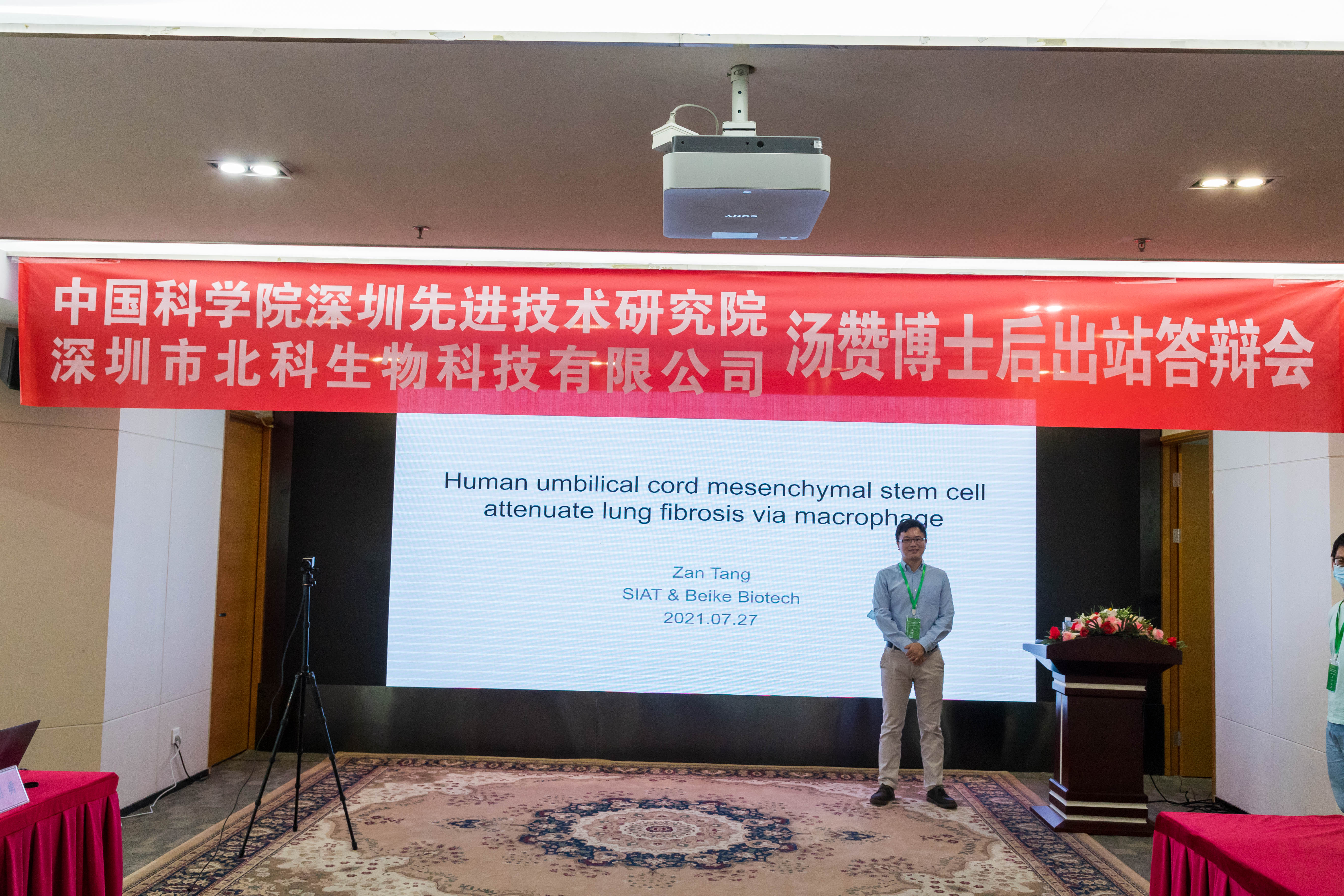 7月27日,由中國科學院深圳先進技術研究院與深圳市北科生物科技有限公司聯合培養的博士后湯贊博士出站答辯會在北科大廈舉行。