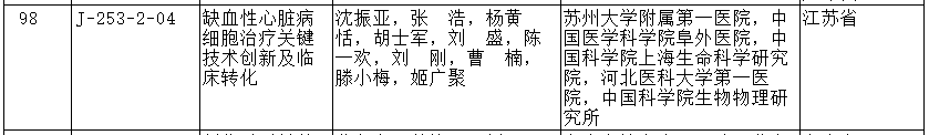 其中,蘇州大學附屬第一醫院、中國醫學科學院阜外醫院、中國科學院上海生命科學研究院、河北醫科大學第一醫院、中國科學院生物物理研究所共同完成,蘇大附一院心臟大血管外科主任沈振亞教授作為第一項目完成人的《缺血性心臟病細胞治療關鍵技術創新及臨床轉化》和臨床密切相關